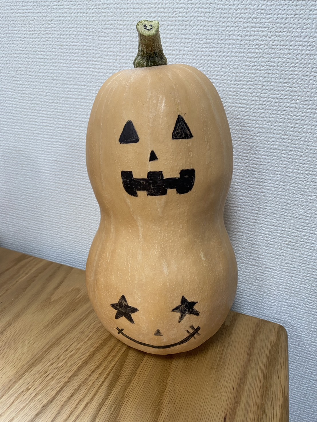 バターナッツかぼちゃは皮がやわらかく、ポタージュやロースト、スイーツにも使いやすい万能選手。そのくびれた形は、ジャックオーランタン風にミニランタンアレンジしてもとても可愛いです。